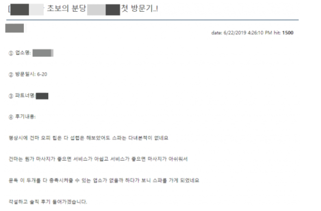 일명 '마사지 업소 후기 글'과
